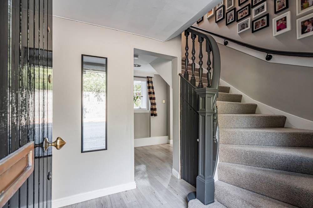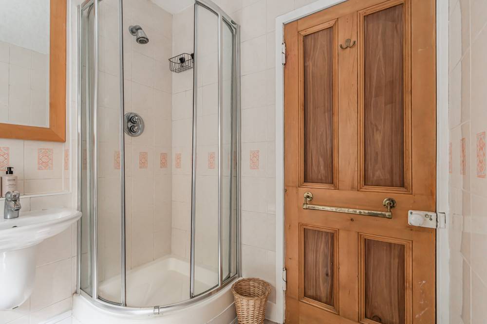 The welcoming hallway, with windows to the front and rear, provides excellent storage including a cupboard beneath the stairs. The spacious reception/dining room is a striking space with triple windows overlooking the garden, featuring an exposed stone wall, multi-fuel stove, and access to the garden through a double glazed door. A well-appointed kitchen/breakfast room offers shaker-style wall and base units, a Rangemaster cooker, integrated slimline dishwasher and washer/dryer, and has direct garden access. Completing the ground floor is a shower room with white suite and ceramic tiling. Upstairs, there is a wide landing with built-in storage cupboard also housing the combi boiler. The principal bedroom features extensive fitted wardrobes and an adjoining dressing room with wash hand basin, offering scope to create an en-suite if desired, subject to the usual consents. A further double bedroom with feature fireplace and a third double currently used as a home office provide flexible family living. The family bathroom, with contemporary white suite and tiling to dado level, completes the first floor. Benefits include gas central heating from a Worcester combi boiler and secondary glazing to the first floor windows.