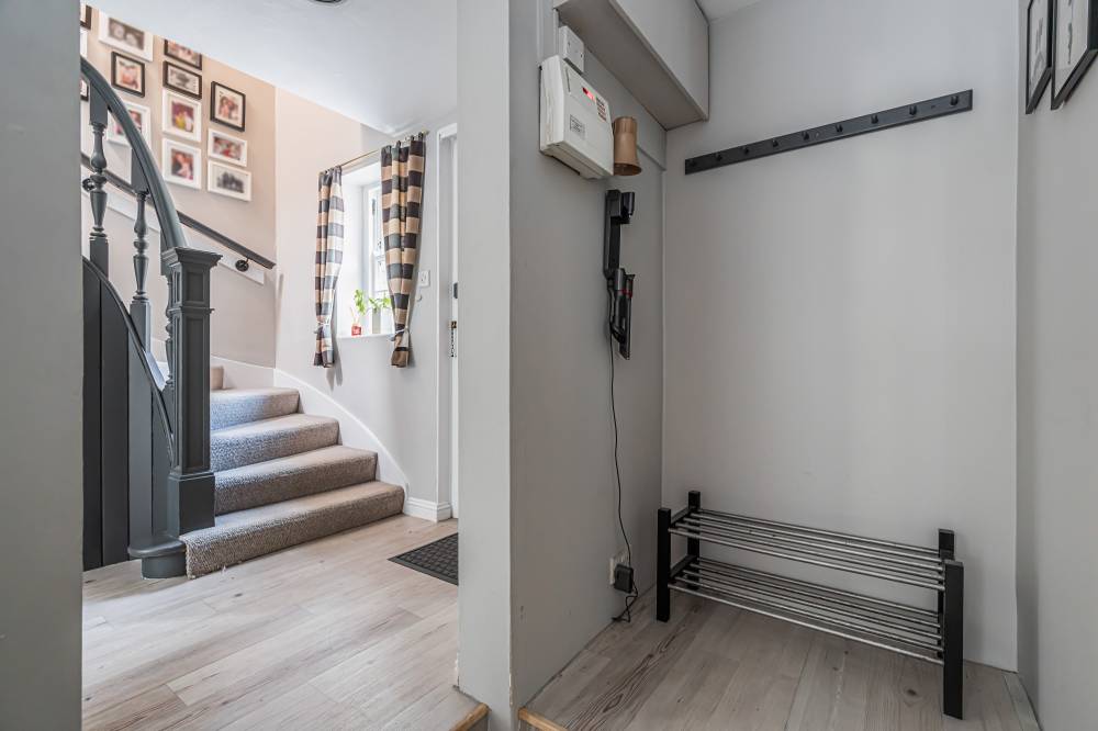 Externally, the property enjoys a private, enclosed courtyard garden ideal for al fresco dining and entertaining, with cobbled and paved areas, raised beds, and a sheltered log store. A gate provides access to a shared courtyard where the property’s garage is located directly opposite. The garage, positioned at the end of a terrace of four, has an up-and-over door and a fixed ladder stair leading to a fully floored loft room with timber flooring and large double glazed Velux window – an excellent home gym or office space. There is a shared parking space for one car in the communal courtyard and ample on-street parking is also available.