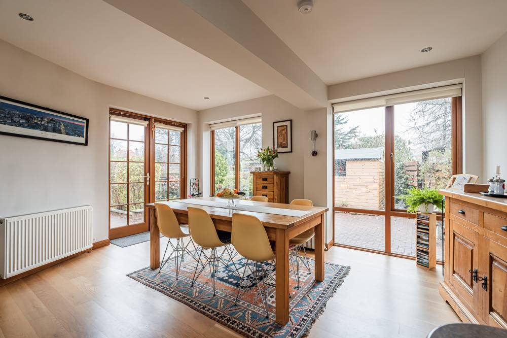 The accommodation briefly comprises: welcoming hallway with sanded and varnished floorboards and a substantial built-in storage cupboard, comfortable south facing main reception room with bay window, coving to ceiling and attractive focal fireplace, versatile family room/additional living space with garden views and fireplace, beautifully designed Mozolowski and Murray garden room extension which acts as a wonderful heart of the house and offers a light filled dining/entertaining space with views of the garden and access to both the front and rear of the property, open plan to a well equipped kitchen with central skylight, which has been fitted with a variety of base and wall mounted units, coordinated wipe-clean worktops, splash tiling and an assortment of integrated appliances, generously sized principal bedroom with tasteful contemporary décor, near floor to ceiling dual aspect windows and modern en-suite shower room, second spacious double bedroom with a built-in cupboard and leafy garden views, a smaller double bedroom, and luxury family bathroom with stylish feature wall tiling, counter top basin with backlight mirror, WC, and bath with splash screen and multi-attachment shower.