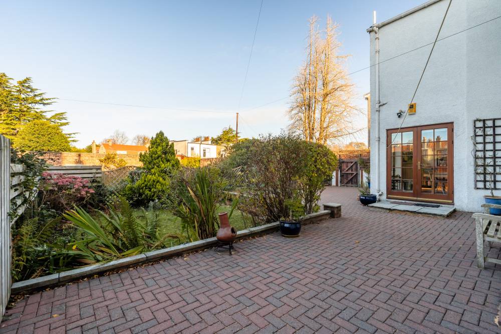 The front of the house features two well-kept lawned areas, bordered by a stone wall and peppered with evergreen trees and well stocked planted beds. A gated monobloc driveway provides secure off-street parking for multiple vehicles and the property can be accessed via double timber doors in the garden room extension. To the rear of the house is a peaceful mature garden comprising a substantial monobloc seating area, lawn, flowering bushes, shrubs and small trees.