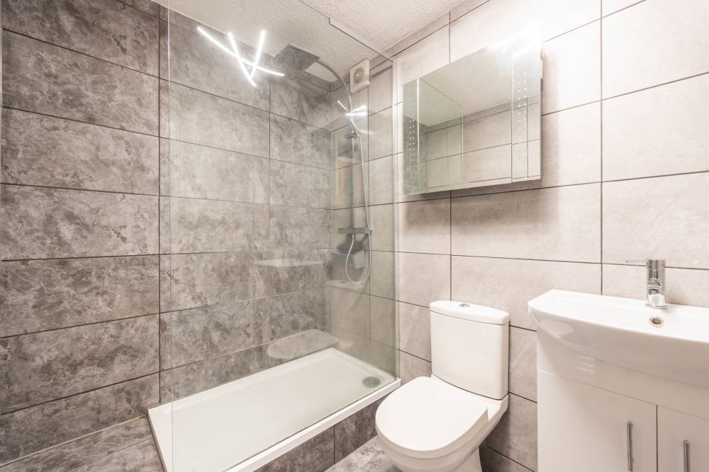The welcoming hallway features both a shelved cupboard and a large walk-in storage cupboard, ensuring excellent practicality. The well-appointed kitchen offers good workspace, and partial tiling in the splash areas. The living room is bright and generously sized, enjoying a pleasant open outlook, while both double bedrooms offer ample space for freestanding furniture and alternative layouts. A fully tiled shower room with a step-in rainfall shower, and heated towel rail completes the accommodation. A versatile box room provides the flexibility to use as a home study, dressing room, or additional storage space.