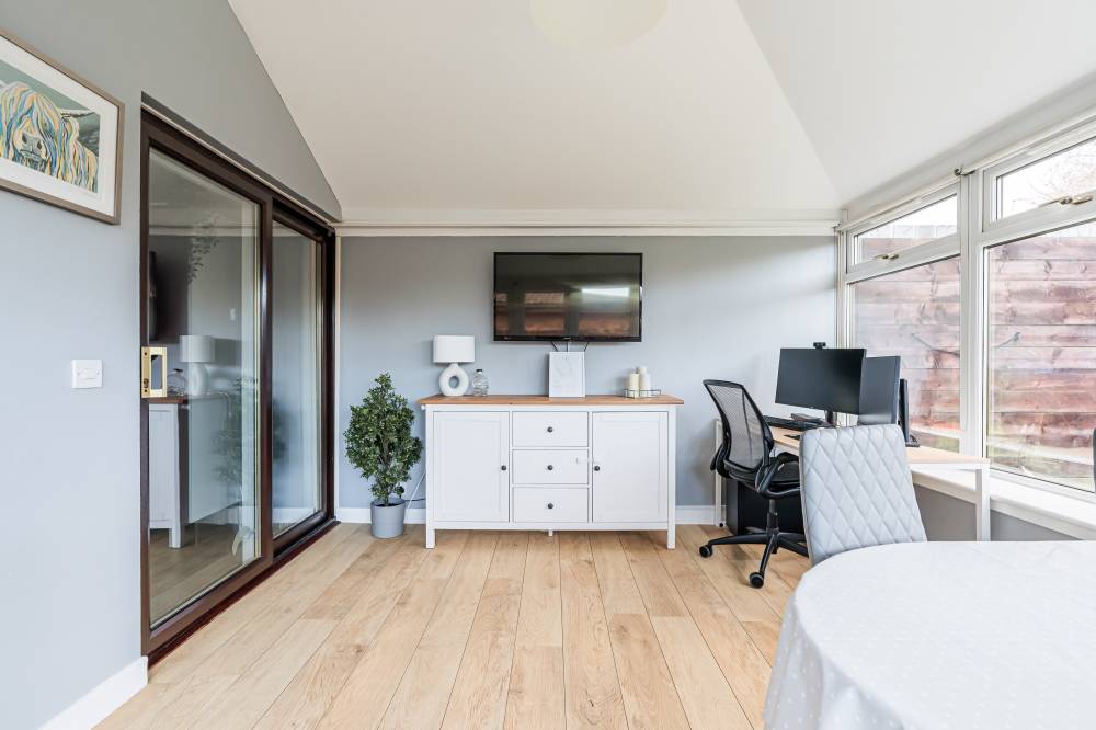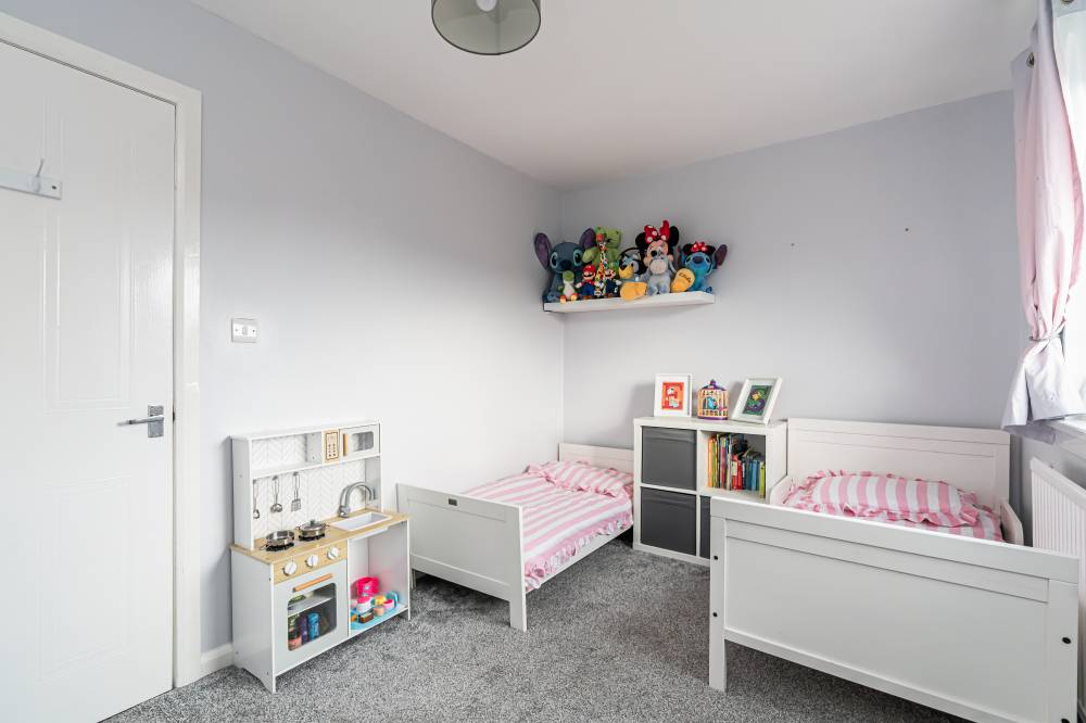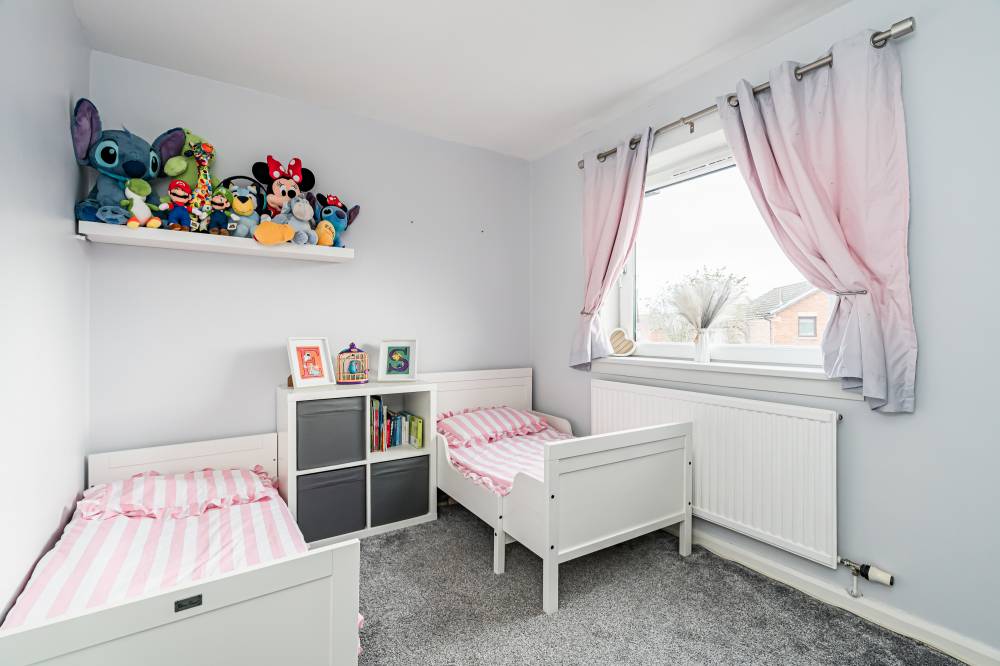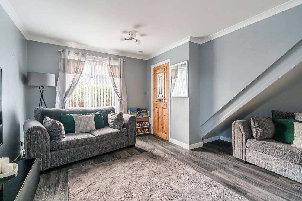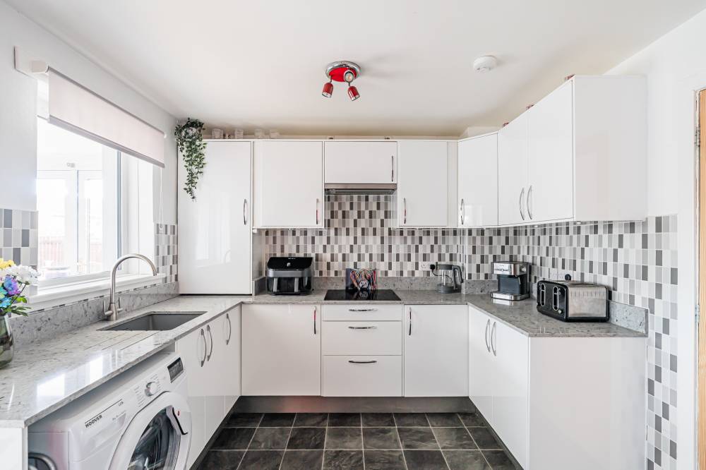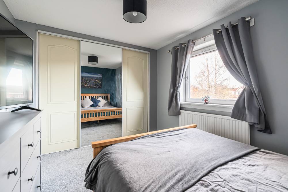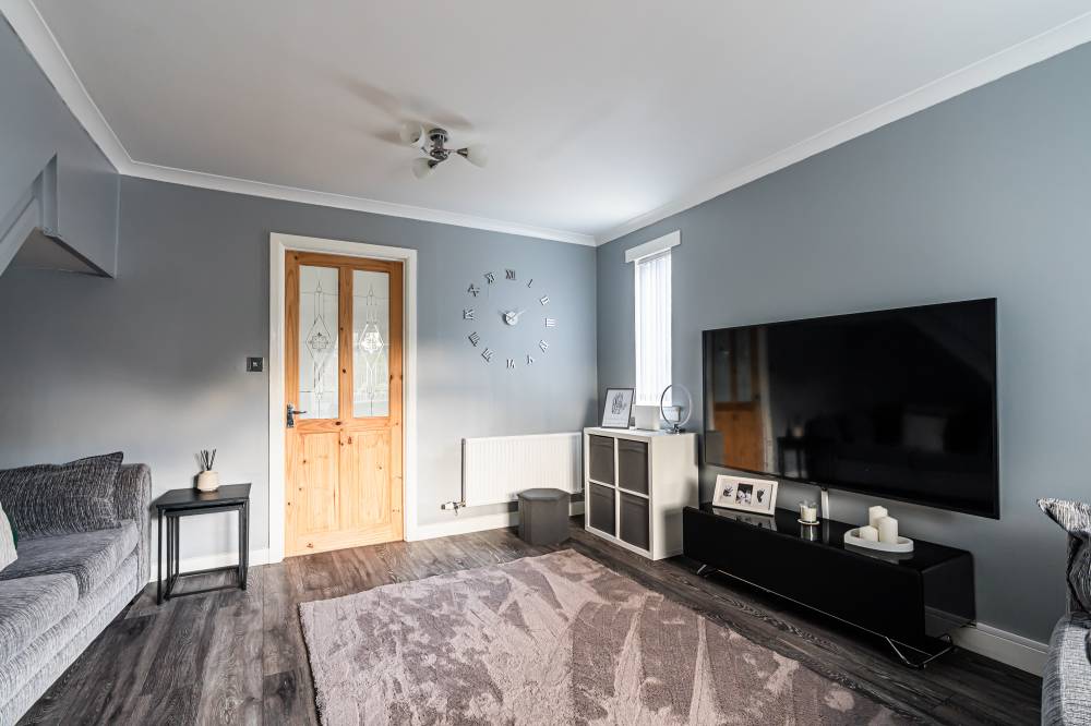 Forming part of a quiet cul-de-sac setting within an established modern development, the property forms part of the desirable Jewel district of the city, a stone’s throw from Asda’s Edinburgh Supercentre and just a short drive from the Fort Kinnaird Retail Park and super transport links. This delightful home shall undoubtedly appeal to the professional person/couple or small families and merits internal viewing to be fully appreciated. Enjoying a light and stylish interior throughout, the accommodation comprises; entrance vestibule and hall with carpeted staircase leading to the upper floor. There is an attractive, dual aspect lounge with adequate space for sofas and additional furniture with door leading to the sizeable modern fitted kitchen with ample wall and base units, complimentary work surfaces incorporating the built-in electric hob with hood above, separate eye level built-in oven and microwave with free standing appliances included in the sale. Patio doors lead to a sunny familyroom/sun room, a delightful addition to this home, currently utilised as a diningroom/home office but offering excellent flexibility. Enjoying a lovely setting over the rear garden with direct access to the paved patio. Upstairs leads to the two good sized double bedrooms, each with its own built in storage with the principal bedroom fitted with mirrored wardrobes. The stylish, recently upgraded bathroom comprises of a white three piece suite with Rainfall dual shower unit over bath, complimented by wet wall paneling and a vanity unit with built-in storage. Further benefits include a gas central heating system with combi boiler (upgraded 2023) and double glazing.