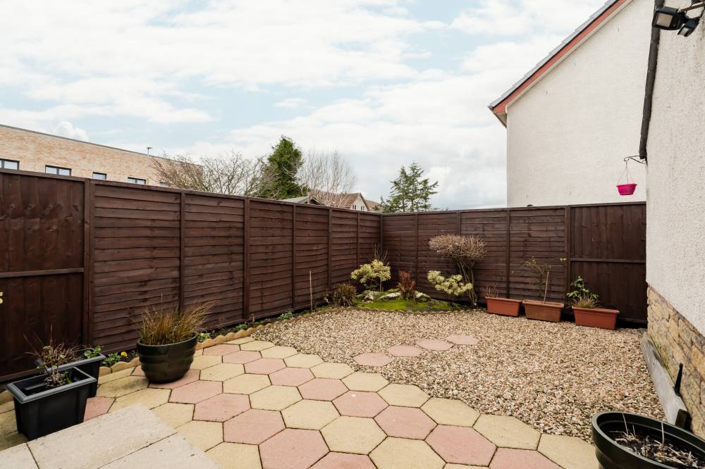Externally, the rear garden is designed for easy upkeep, featuring a patio and chipstone areas. A single garage provides additional storage with rafters accessed via a Ramsay ladder and benefits from a floored area, while the driveway offers off-street parking for up to three cars.