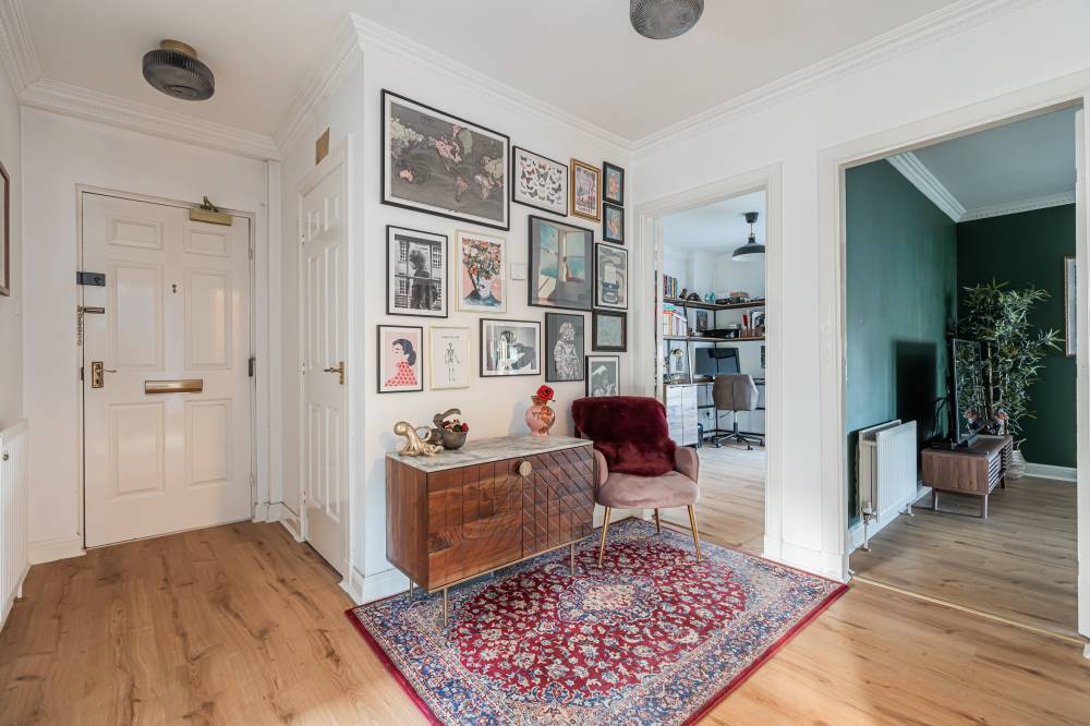 In brief the accommodation comprises; secure entry system, entrance vestibule leading to welcoming entrance hallway spacious enough for a seating area, generously proportioned and bright bay-windowed reception/dining room offering a leafy aspect, modern fitted kitchen, fantastic sized principal bedroom with mirrored fitted wardrobes, access to balcony and contemporary en-suite shower room, second well proportioned double bedroom with fitted wardrobes and family bathroom with three-piece suite and shower over bath. Further benefits include gas central heating and double glazing.