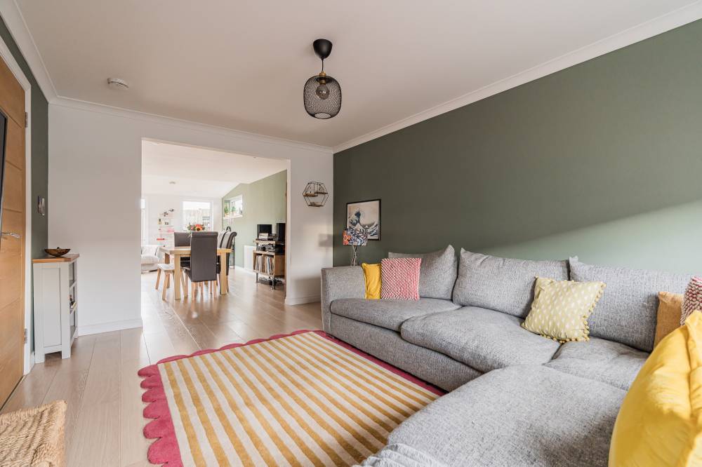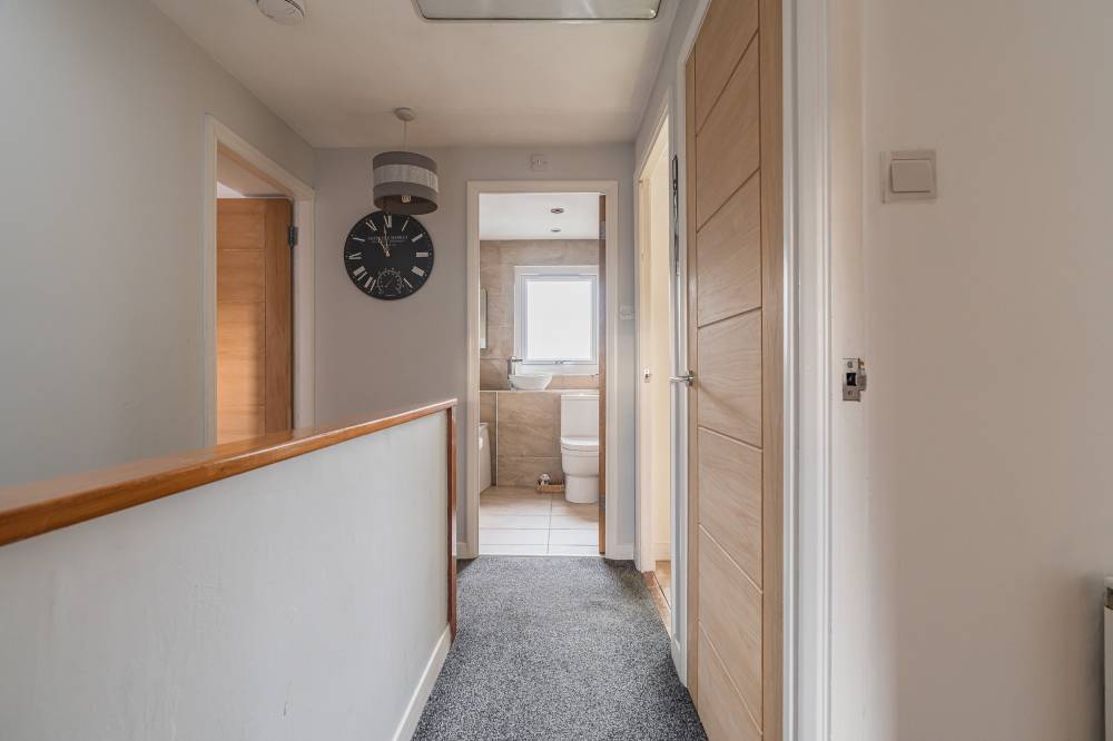 The landscaped rear garden is easily maintained with areas of patio and chip stones, creating the ideal environment for children to play and to enjoy outside dining/relaxing. To the front lies well maintained garden grounds together with driveway providing off-street parking leading to the garage with up and over door.